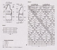 Плотность вязания. Основной узор, крючок № 3,5: 18 п. и 9 р. = 10x10 см; кружевной узор 1 и 2, крючок № 3: 20,5 п. и 9 р. = 10x10 см.