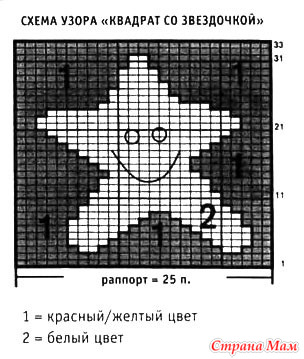 Узор «квадрат со звездочкой»: ширина мотива 25 п., мотив вязать по схеме.