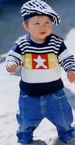 Великолепный комплект для мальчиков, выполненный лицевой гладью с несложным узором.
