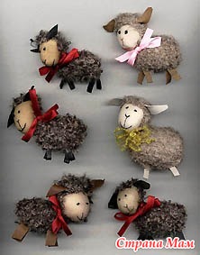 Ножки- ручки этих овечек сделаны из шнура или ниток с пуговицами или бусинками.