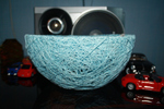 Дите надуло шарик. Взяли остаток хб ниток для вязания и поколов бутылку с ПВА, пропустили через неё нитки. Начали наматывать на шарик. Потом подождали пока подсохнет и шарик прокололи и вытащили. Но терпения не хватило и получился на шар нитяной, а чего мягкое)). Ребенок натянул на голову, объявил это шляпой. А потом оказалось, что это ваза для всякой мелочи.