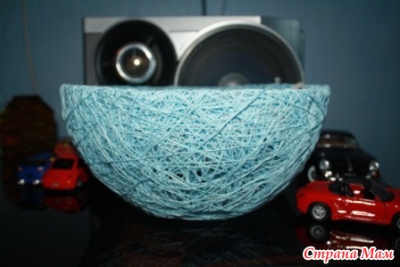 Дите надуло шарик. Взяли остаток хб ниток для вязания и поколов бутылку с ПВА, пропустили через неё нитки. Начали наматывать на шарик. Потом подождали пока подсохнет и шарик прокололи и вытащили. Но терпения не хватило и получился на шар нитяной, а чего мягкое)). Ребенок натянул на голову, объявил это шляпой. А потом оказалось, что это ваза для всякой мелочи.