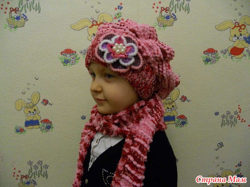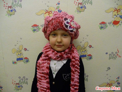 Вот связала в Якутск, дочери подруги комплект, берет и шарфик: