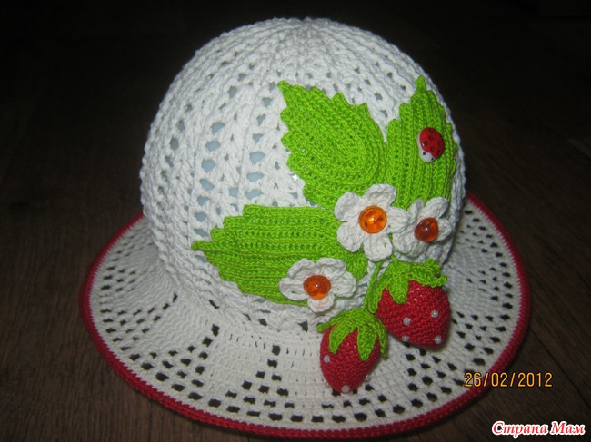 Вкусная шапочка-клубничка - авторская работа (с описанием)