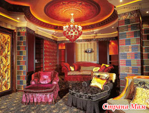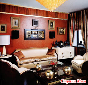 Удачным и красивым получится интерьер гостиной или кабинета, решенный в различных оттенках красного - от бледно-золотистого до темной терракоты, так как сочетание золота с красным всегда отождествляется с мощью, красотой, властью.