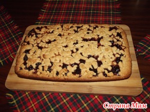 Вторую часть теста тонко раскатать (0,3-0,4 мм), выстелить на противень, смазать вареньем( мне больше всего нравится с вишнёвым). Часть теста, которая была в морозилке, натереть на крупной тёрке сверху равномерно на варенье.