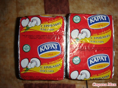 еще компонент - сыр, у меня нашлись сырки для супа, и кусочек российского