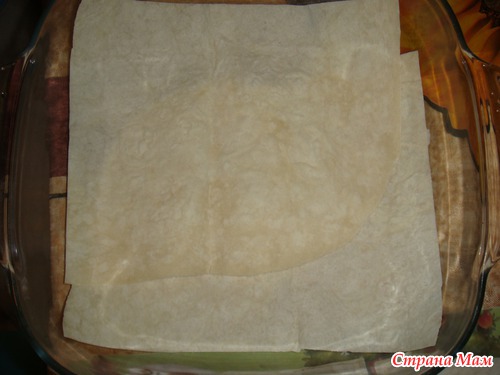 и начинаем, лаваш порезала на 4 части - мне так удобнее в форму складывать, толстые края внутрь