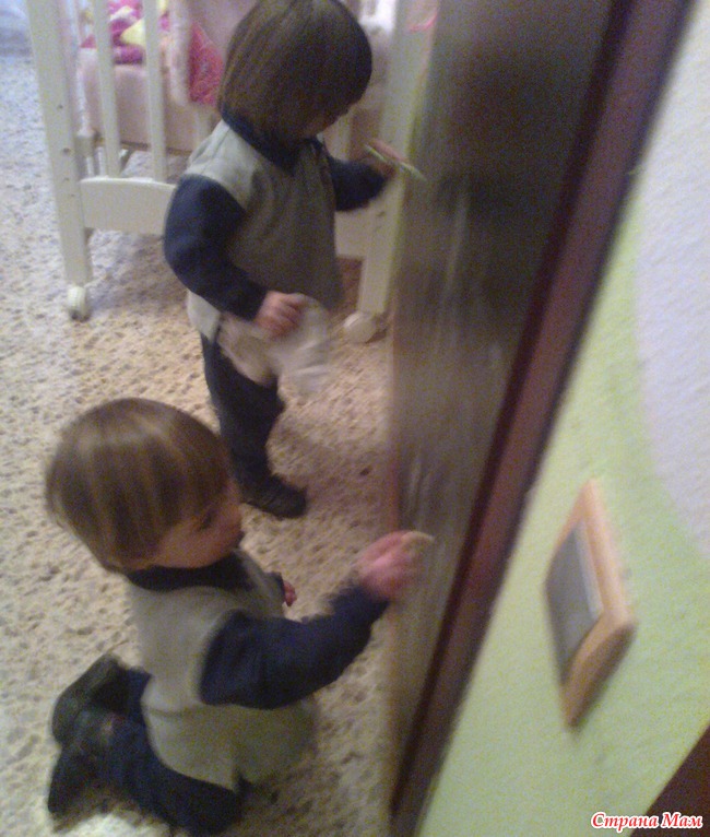 Даю тряпку. ребенок высунув язык трет, подключается другой ребенок. Вопли, толкания, 10 минут все заняты, потом: -Мама.. не стирается.
