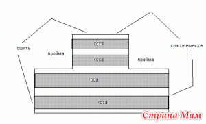 Если смотреть по схеме, то узкие части пришиваются потом к широкой части, но так чтобы оставалось место для горловины. Они не за спиной соединяются, а на плече.