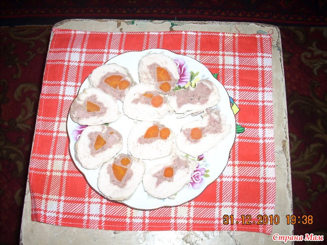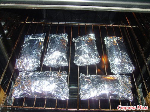 На мой взгляд, рулетики бледноватые. Ну ясное дело, они же в фольге запекались. И я всё-таки слегка их поджарила ещё. Чисто для красоты. Вот здесь, рулетики готовы к траспортировке в байк-клуб (там мы отмечаем все праздники).