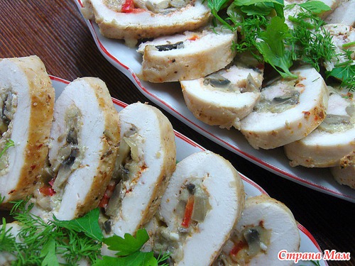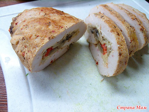 Может показаться, что много курицы, а начинки мало. Это не так. Золотая середина. Этой начинки достаточно, чтоб грудка не получилась сухой. Всё в идеале!!!