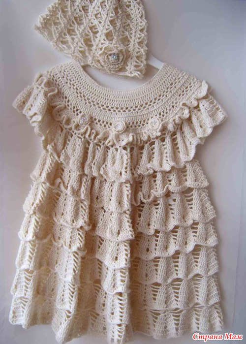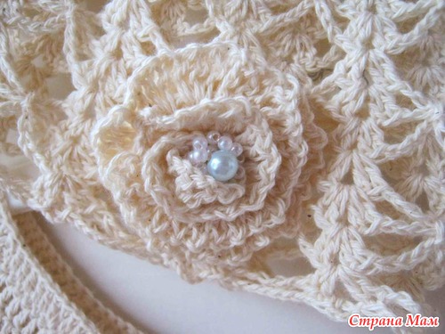 Вот и шапочку к нему наваяла) Я остановилась на маленьких розочках, в качестве декора верха, т к очень яркого чегото не хотелось)