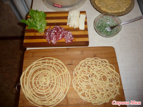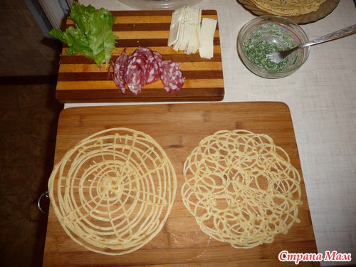 Здесь кусочки должны быть слайсами, чтобы они не выпали из нашего блинчика.
