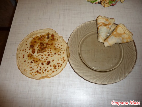 Для сладких блинов я сделала медово-ореховую начинку с добавлением коньяка.