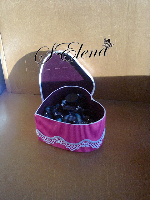 Эта шкатулка выполнена с нуля: картон, гофрированная бумага, самоклеющаяcя бумага, ножницы, тесьма, бусины, клей и бархат для отделки внутри: