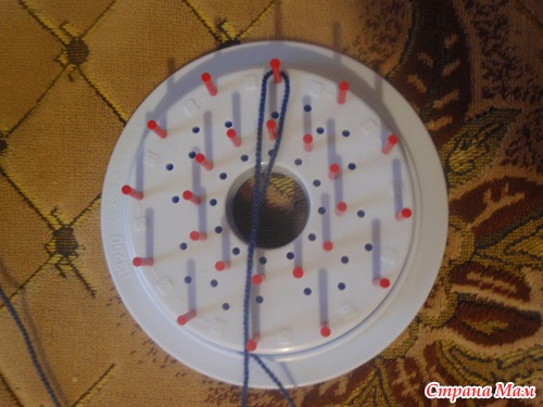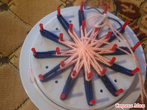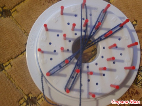 я делала три нити большого цветка и переходила к наматыванию центрального, той же нитью. Но сдесь показываю другим цветом, чтоб было лучше видно: