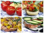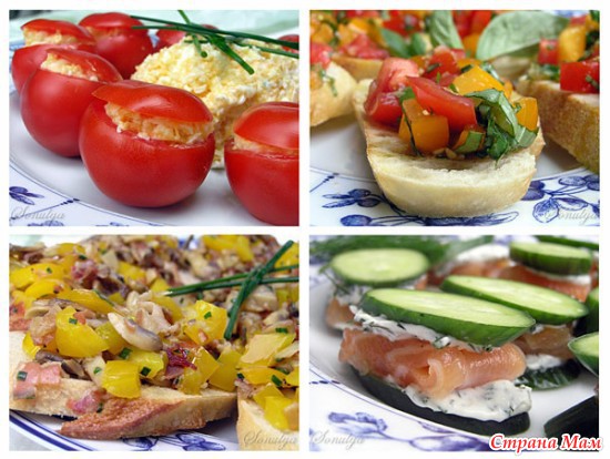 Несколько свежих крупных помидоров, банка консервированных (или жареных) шампиньонов, сыр (кто какой любит). Нарезать и разложить на блюдо толстенькими кружочками помидоров, посолить, поперчить, сверху посыпать измельченными шампиньонами, посыпать тертым сыром. Поставить в духовку или микроволновку. Когда сыр расплавится - вынимайте! Легкая закуска готова.