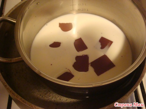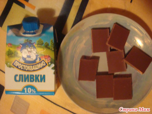 на водяной бане растапливаем плитки шоколада в сливках