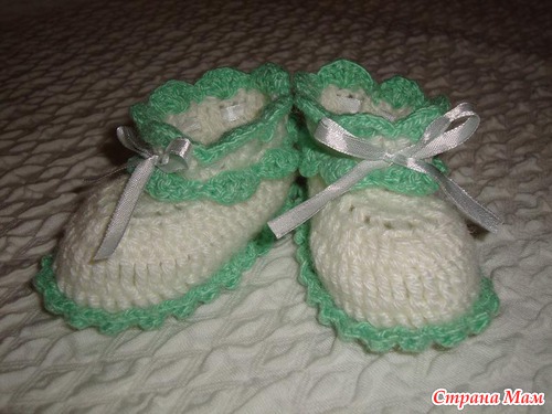 Вот эти пинетки связаны по МК по этой ссылке: https://www.stranamam.ru/post/1975144/