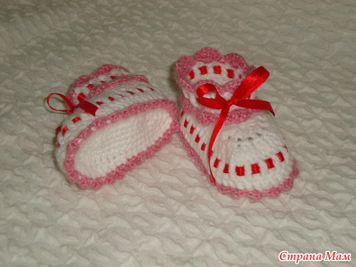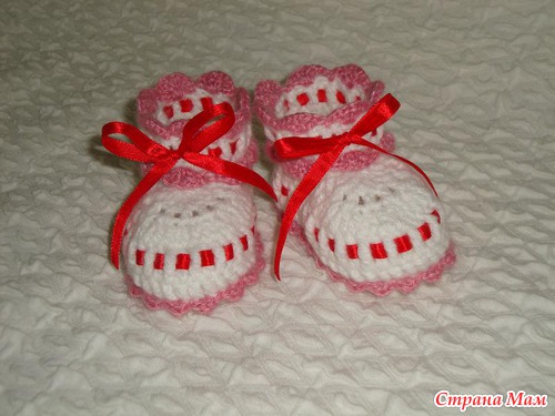 Вот эти пинетки связаны по МК по этой ссылке: https://www.stranamam.ru/post/1975144/