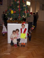 Доча Деда Мороза не испугалась. Как-то равнодушно его восприняла. Ей гораздо больше понравилось то, что вокруг много деток нарядных, вокруг елочки хоровод водить. Танцевать. Даже от Бабы Ёжки немного поубегали. Правда старшие детки заметили, что Дед Мороз и Снегурочка были немного безынициативными - все на Бабу Ягу свалили. Старшая дочь и племянник с бОльшим удовольствием сходили в один из залов музея, где проходила елка.