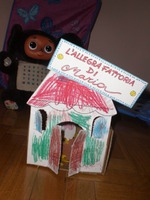 В мае месяце они всем садиком ездили на ферму,смотреть коров,кур и лошадей.Мое молчаливое созданье мне конечно ничего не рассказало,и домик судя по всему работа маэстры,но ей понравилось. Внутри собачка,поросенок,петушок и овечка.
