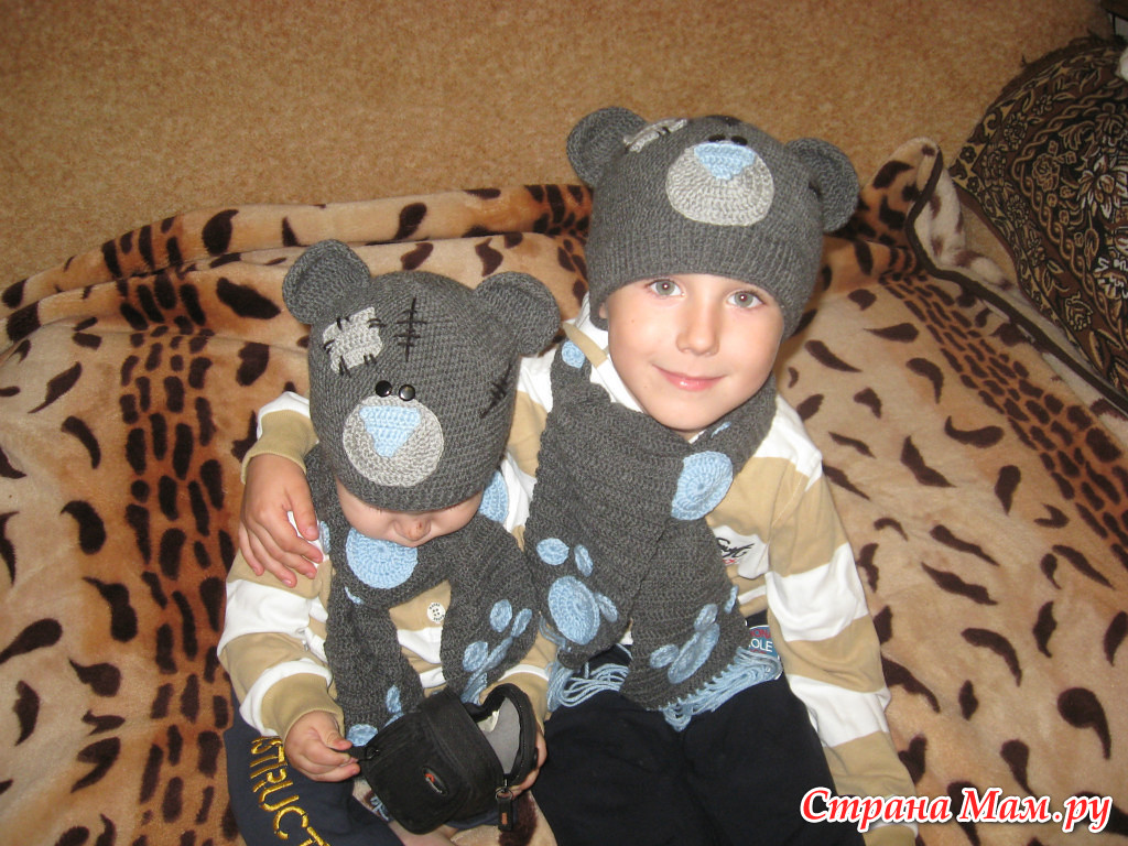 После этого оставьте для передней части 13-14 см, а на остальных петлях вяжите еще 2-3 ряда ст. с/н. Затем вяжите «ушки» по схеме 1. Обвяжите край шапочки столбиками б/н 1 рядом серой нитью и 1 рядом меланжевой нитью. Для завязок скрутите шнурки желаемой длины, пришейте к «ушкам».