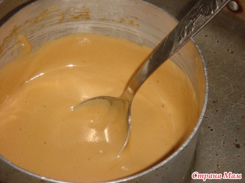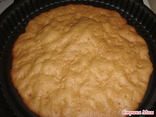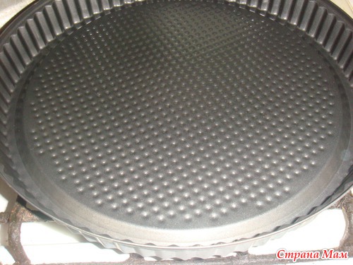 включаем духовку. При выпекании первого коржа форму грею на газу (так легче будем распределять тесто)