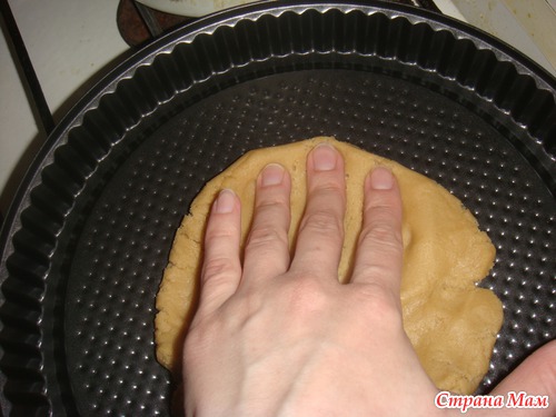 выкладываем на разогретую форму и подушечками пальцев распределяем по форме