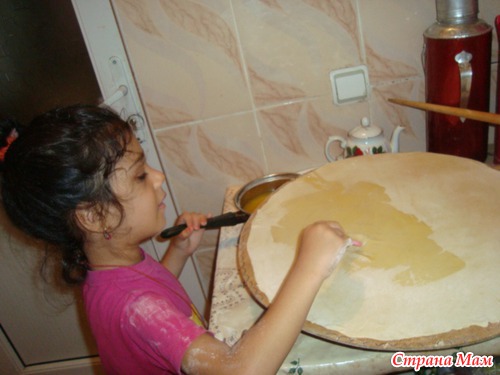 потом собераем их друг на друга и мажем растопленным маргорином.