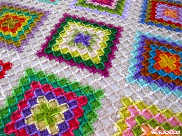 ля вязания можно использовать все имеющиеся остатки ниток. Вяжется он из маленьких мотивов, которые соединяются в процессе вязания.