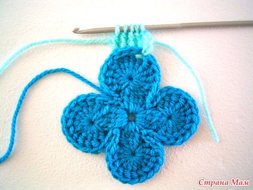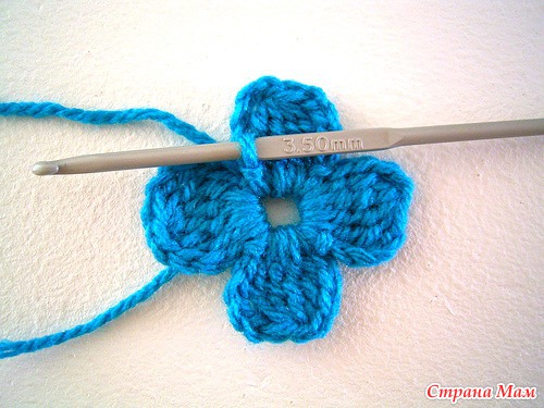 Таким образом вяжем 4 лепесточка