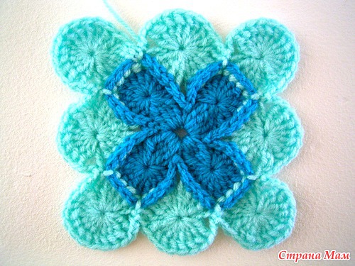 Вяжется он из маленьких мотивов, которые соединяются в процессе вязания.