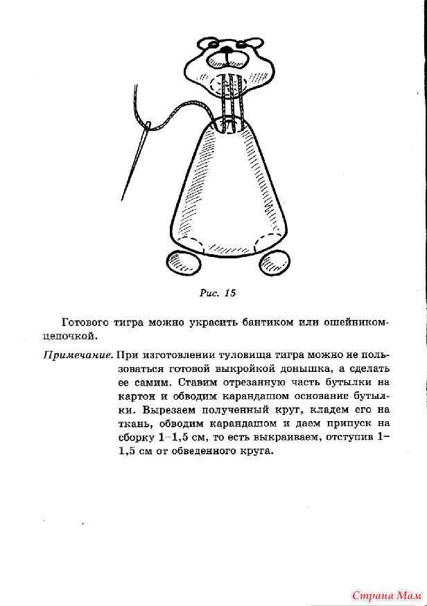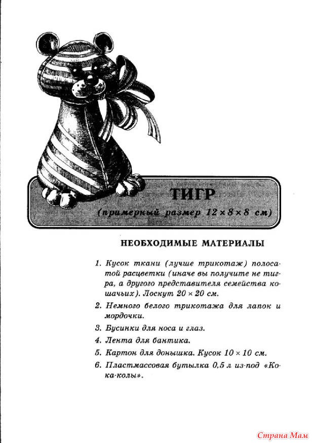 Больше всего заинтересовало изготовление тигрёнка на каркасе из пластиковой бутылочки. Проволоки у меня в доме не водится, а вот бутылки есть всегда. Да и расписано всё предельно чётко и ясно, с иллюстрациями. Замечательный подарок можно сшить за несколько часов для родных и близких, тем более что тигр - символика наступающего года. Попробуем?