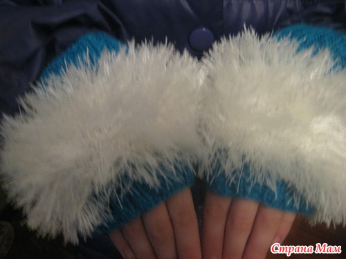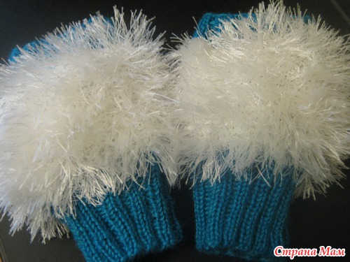 Эти митенки я начала вязать себе, но лишилась их сразу, как только дочка увидела. Они тоненькие, в "травку" дополнительную нить я не добавляла. На весну в самый раз