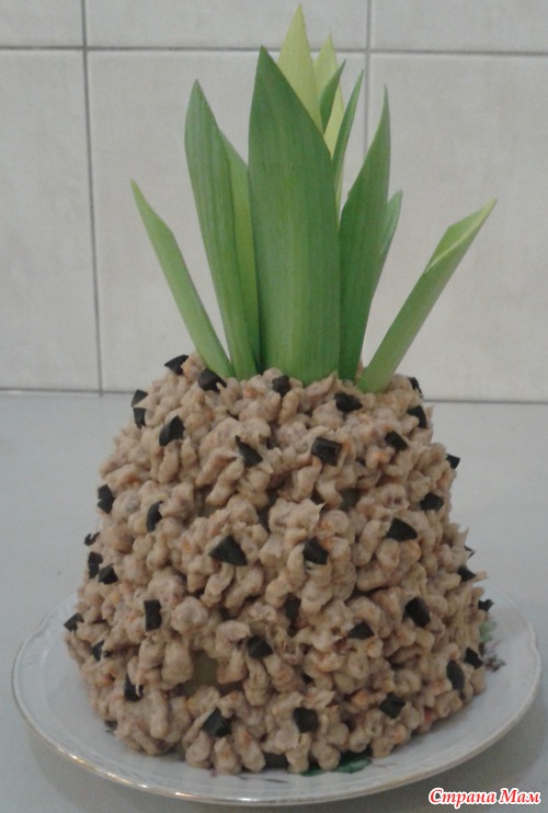 Начиная снизу по кругу отсаживать "чешуйки" ананаса: