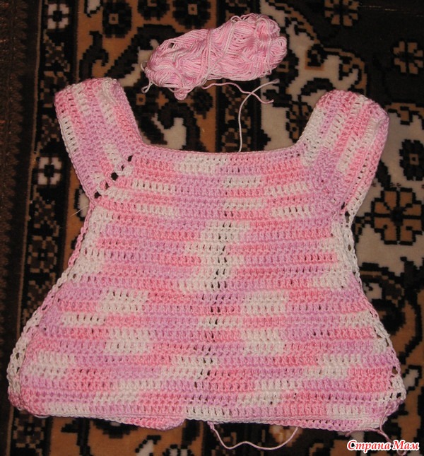 Подскажите пожалуйста, какой лучше выбрать узор для юбки платья?Начала вязать платье для дочки нитками секционного крашения. В моточке они очень хорошо смотрятся, но то, как легла нитка в изделии мне совсем не нравится. Распускать не стала. Хочу довязать. Но вот теперь озадачена тем, какой же рисунок лучше подойдет для вязания из таких ниток? Хотелось чего-нибудь ажурного, чтбы юбочка была немного пышной.