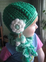 Дочь попросила связать ей "зеёную сапку с цветком". Два вечера и любимая принцесса примеряет обнову.