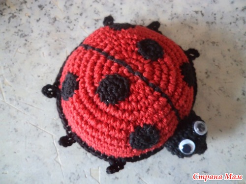 Вам потребуется: нитки для вязания (полушерсть) красного, черного и белого цвета; крючок №1,5; картон; синтепон или вата для набивки. Техника выполнения: вязание крючком столбиками б/н. Брюшко (черная нить): цепочку из 4-х в. п. замкнуть в кольцо с помощью соед. ст. 1 ряд: 8 ст. б/н под петли цепочки. 2 ряд: 16 ст. б/н в столбики нижнего ряда. 3 ряд: 32 ст. б/н. Читать полностью