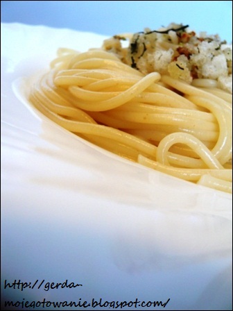 4. В готовые спагетти вылить настоявшееся масло, перемешать