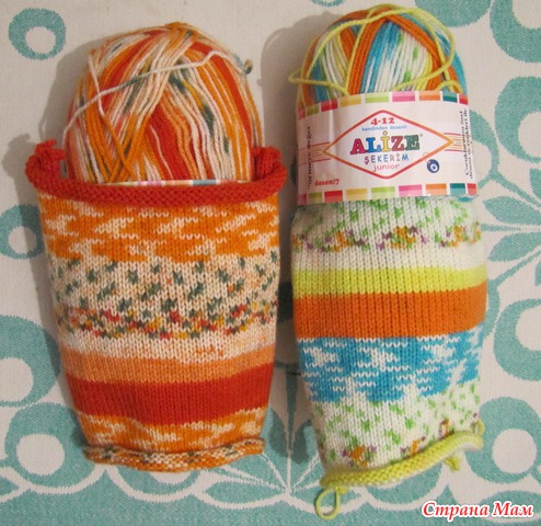 В джемпере у вас будут полоски уже, а в носке широкие. Для маленьких размеров носков (до 20р) я ее не использовала, а для 22-нормально получались широковатые полосочки.