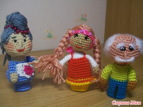 Девочки, решила показать вам мою муку мученическую - пальчиковых кукол. Вот даже сосчитать не возьмусь, сколько я их перевязала. И сейчас снова выполняю заказ на все те же "пальчики". В ближайшем будущем планирую увеличить цену - труд кропотливый, времени забирает много. Но хотела сказать не об этом. Даже не представляла себе, насколько полезная штука эти куколки. Мои гномики готовы играть в них доооолго-дооолгооо. Заковырка в том, что у дочек только первые пальчики, которые вязала еще полтора года назад, сейчас куколки получаются намного интереснее, а связать своим времени нееет