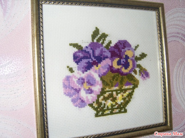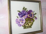 Вышивка "Фиалки" из коллекции фирмы "Риолис". Набор вышивала давно в подарок. Осталась схема и нитки, решила вышить фиалки для дома.