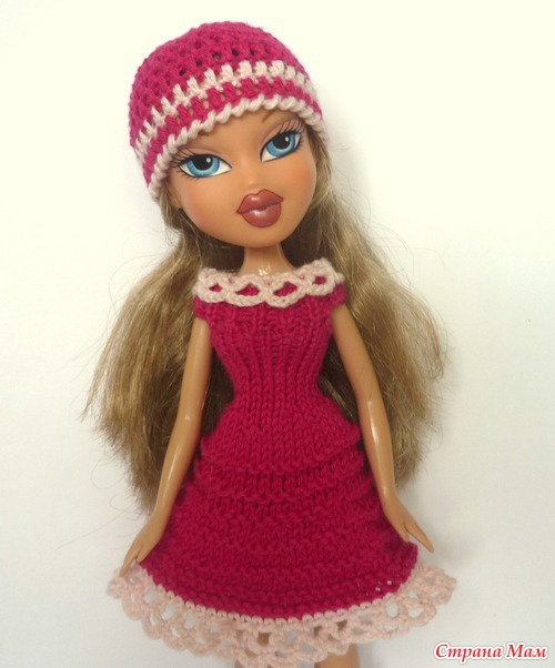 Связалась очередная вязалочка на Братц. Назвала платье "Малинка" (по цвету