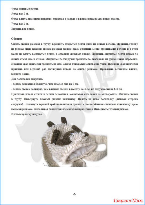Вязала вот по этому описанию, только нитки серые, наверно, не совсем подходящие купила - когда набила синтепоном ножки и мордочку, то синтепон просвечивал