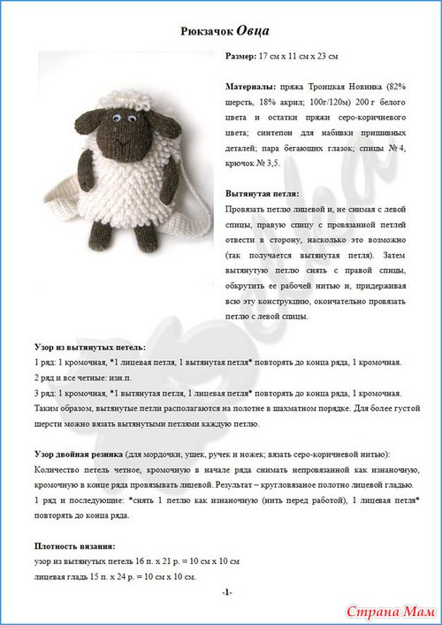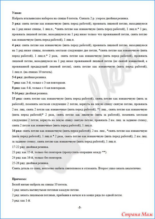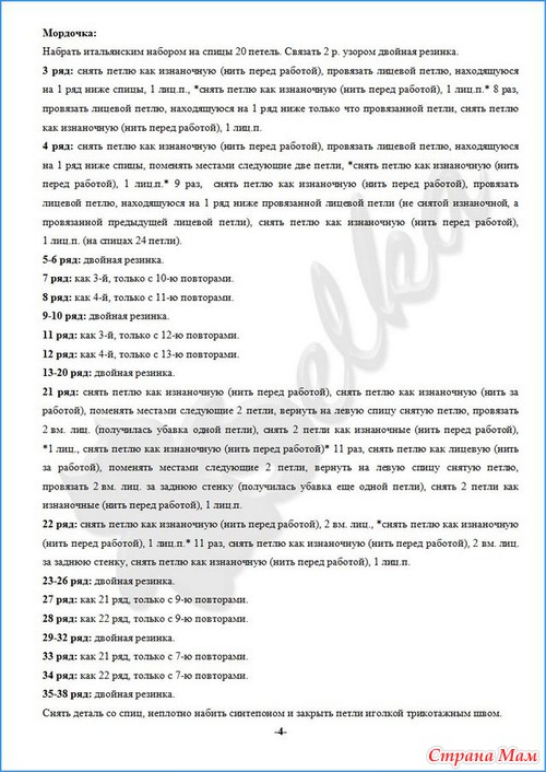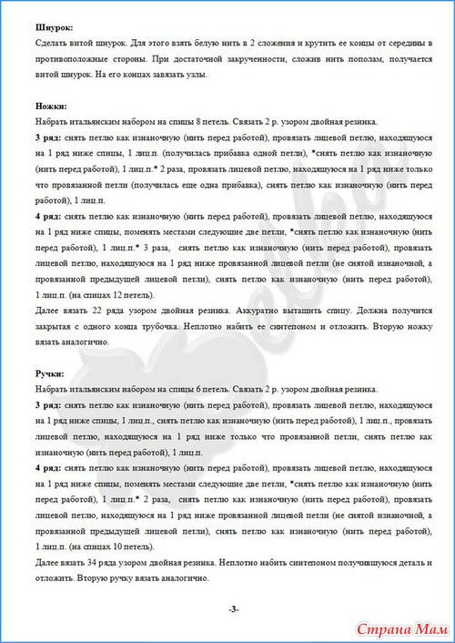 Вязала вот по этому описанию, только нитки серые, наверно, не совсем подходящие купила - когда набила синтепоном ножки и мордочку, то синтепон просвечивал