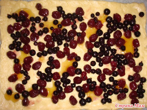 сегодня я делала пирог с вишневым вареньем, замороженной смородиной и ложечка персикового варенья,