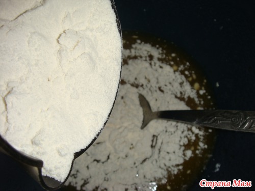 и в конце 0,5 стакана крахмала (тесто получается более мягким и пирог не черствеет)