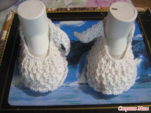 А модель для всех этих пинеток одна, только узор меняю. Вяжу по описанию до 8-го ряда(это подошва), а потом любым узором, можно платочной вязкой, кукурузкой, рисом...